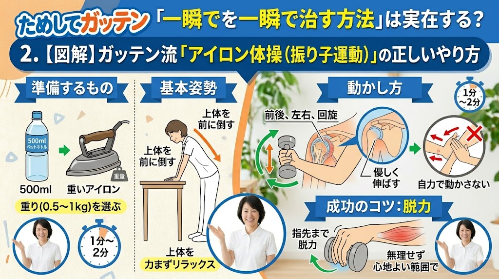 2. 【図解】ガッテン流「アイロン体操(振り子運動)」の正しいやり方