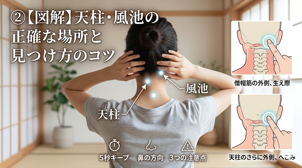 ② 【図解】天柱・風池の正確な場所と見つけ方のコツ