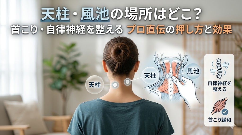 天柱・風池は、首こりや眼精疲労、自律神経の乱れに効果的な万能のツボです。この記事では、初心者でも迷わない正確な場所の見つけ方や、症状を劇的に和らげる正しい押し方のコツを専門知識に基づいて解説します。ガチガチの首・肩を今すぐリセットしましょう。