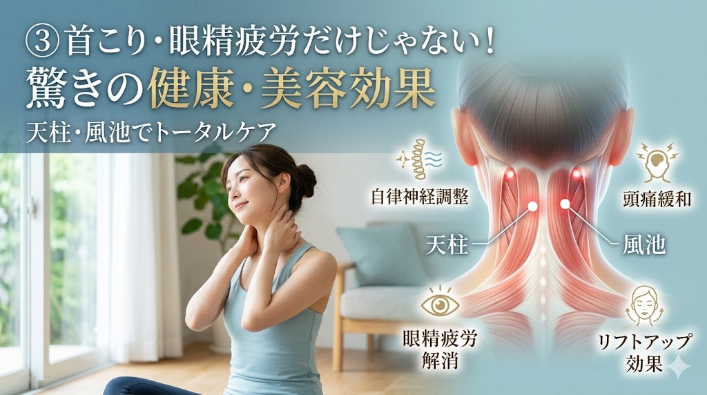 デスクワークでガチガチになった首をリセットするためにも、まずはこの2つのツボの役割を知っておくことが、セルフケアの第一歩になります。