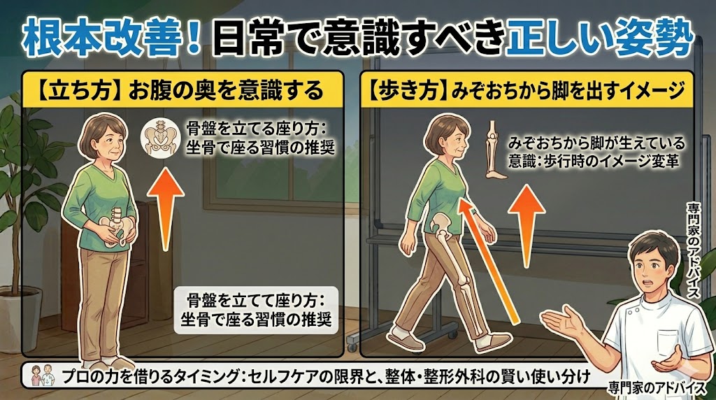 5. 根本改善のために。日常で意識すべき「正しい立ち方・歩き方」