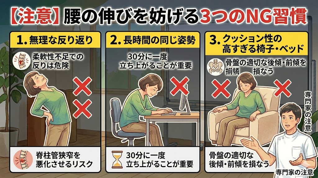 4. やってはいけない!腰の伸びを妨げる3つのNG習慣