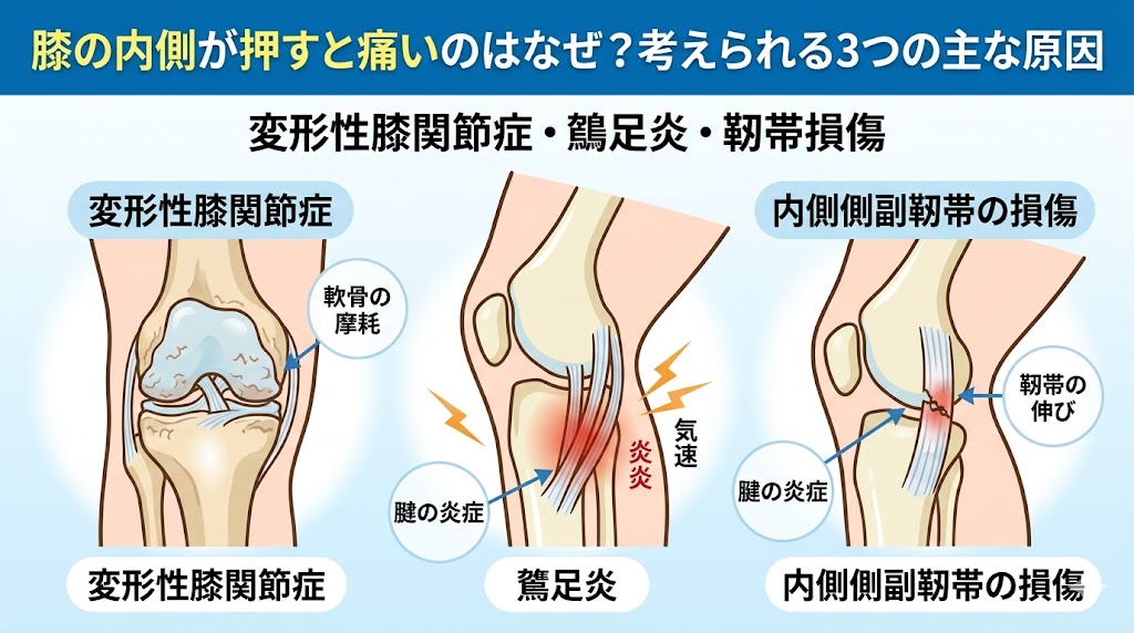 膝の内側を押すと痛いのはなぜ?考えられる3つの主な原因